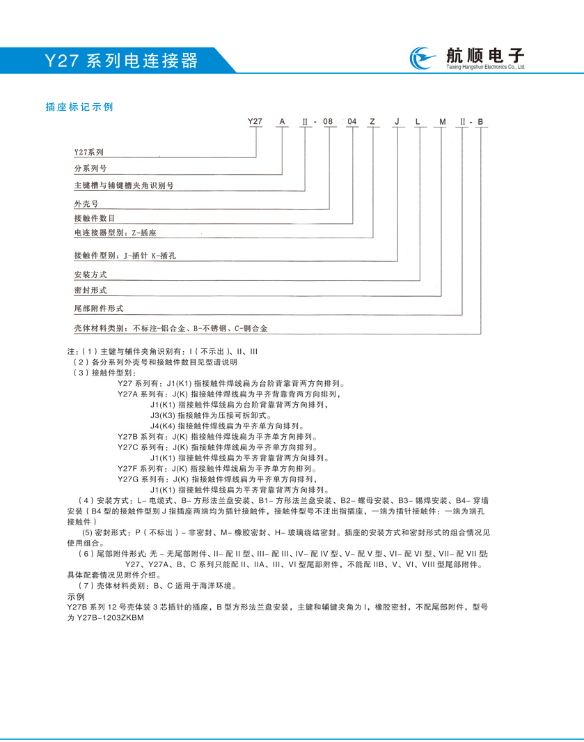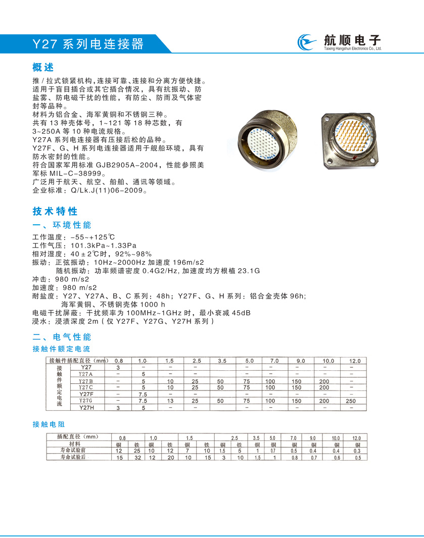 Y27系列船用圓形航空插頭