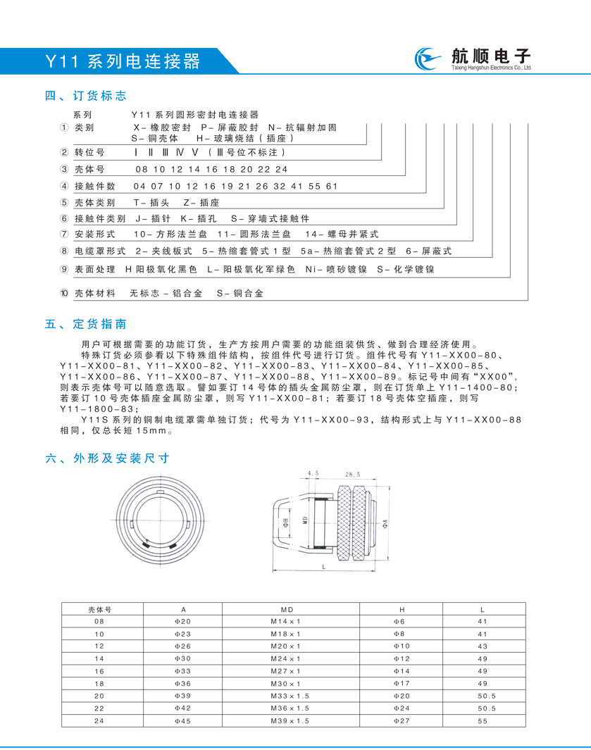 Y11系列圓形密封電連接器具有快速連接,快速分離,體積小,重量輕之特點(diǎn),采用內(nèi)卡口式鎖緊方式,接觸件端接為焊接式,殼體有屏蔽式和非屏蔽式,使用便捷,通用性好,功能多樣,規(guī)格齊全,符合GJB101A—97要求,與YL11同型號(hào)產(chǎn)品互換。