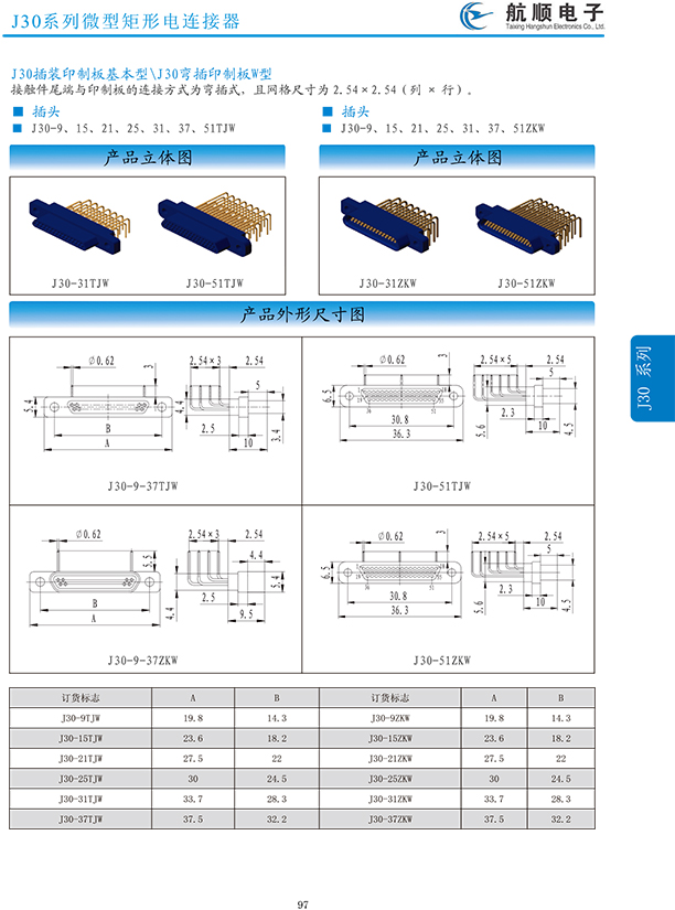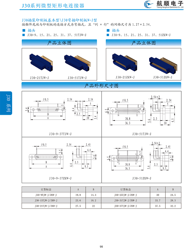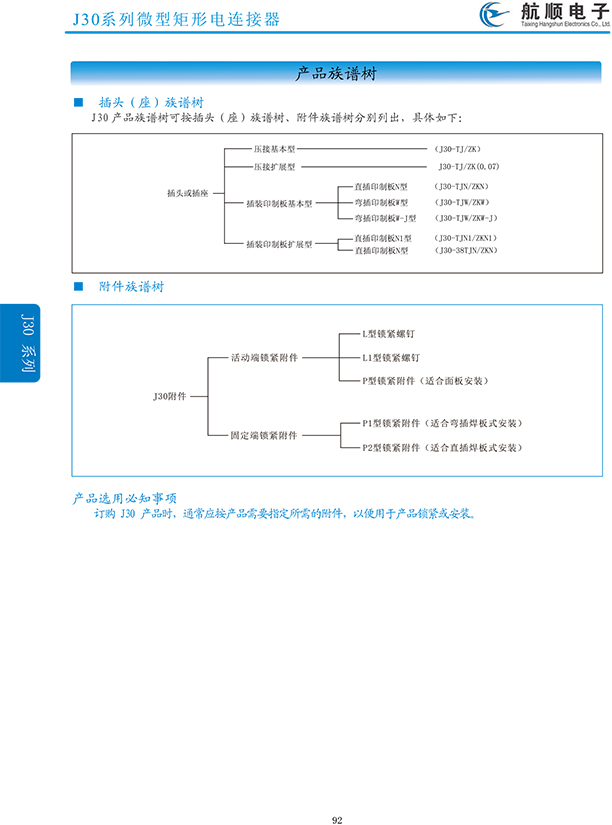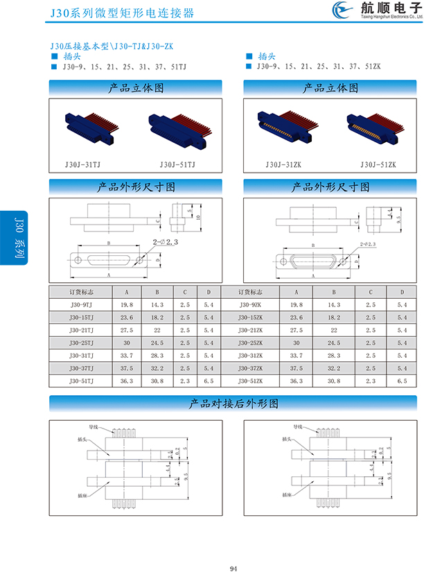 符合GJB2446《外殼定位超小型矩形電連接器總規(guī)范》(相當(dāng)于美軍標(biāo)MIL-C-83513),可與美國(guó)MDM系列產(chǎn)品和國(guó)內(nèi)同類產(chǎn)品互換,在J30系列產(chǎn)品的基礎(chǔ)上增 加了鋁合金外殼與各種鋁合金尾夾;采用絞線式插針 (俗稱麻花針),單個(gè)接觸件接觸點(diǎn)達(dá)七個(gè),提高了產(chǎn)品的接觸可靠性;采用1.27mm網(wǎng)格,接觸件密度大、體積小、重量輕;現(xiàn)有9、15、21、25、31、37、51、66、74、100芯共十種型譜可供選用;適用導(dǎo)線線芯 截面積為0.07~0.15mm2,尾端可以根據(jù)用戶要求進(jìn)行 布線;本產(chǎn)品的鎖緊組件按與產(chǎn)品組裝在一起提供,如不需鎖緊組件請(qǐng)?jiān)诤贤凶⒚鳎槐鞠盗挟a(chǎn)品滿足GJB2446《外殼定位超小型矩形電連接器總規(guī)范》的 要求;本系列產(chǎn)品的執(zhí)行標(biāo)準(zhǔn)如下:Q/ZHDZ GC-18《J30J系列微矩形電連接器詳細(xì)規(guī)范》。